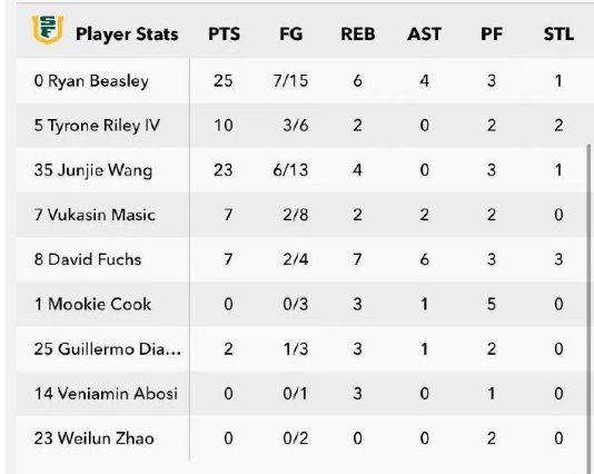 至于趙維倫僅替補登場3分27秒,2中0均是外線三分出手不中顆粒無收,且得分,籃板、助攻、搶斷和蓋帽5項數(shù)據(jù)均是0。