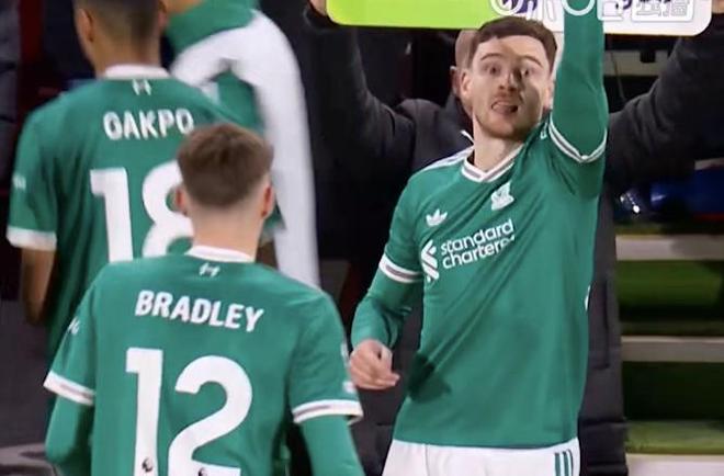 此役客場(chǎng)對(duì)陣布倫特福德,在利物浦1-3落后的情況下,羅伯遜替補(bǔ)登場(chǎng),這位蘇格蘭后衛(wèi)迎來利物浦生涯各項(xiàng)賽事第350次出場(chǎng)。