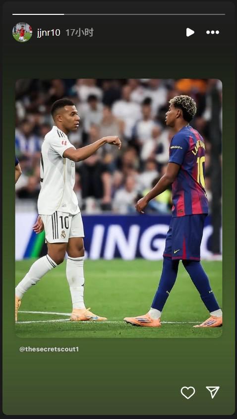 在2025/26賽季首輪西班牙國家德比戰(zhàn)后,曼聯(lián)新星JJ-加布里埃爾通過社交媒體轉(zhuǎn)發(fā)了一則貼文,貼文內(nèi)容為:好一張充滿張力的畫面!姆巴佩在進(jìn)球后,向亞馬爾宣告 “這里是我的主場”。